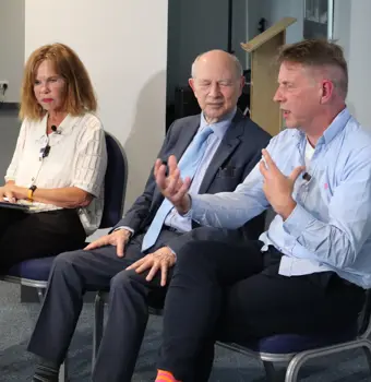 George explained how his career changed course three decades ago. He left international business behind, retrained as a criminologist, and began working in prisons with violent men. “All the ones I worked with had suffered significant abuse in childhood,” he said. Those experiences led him to found the WAVE Trust, dedicated to preventing child abuse, neglect and domestic violence before they ever happen. For the past 30 years, George has been at the forefront of campaigns to transform early years support and break cycles of trauma.